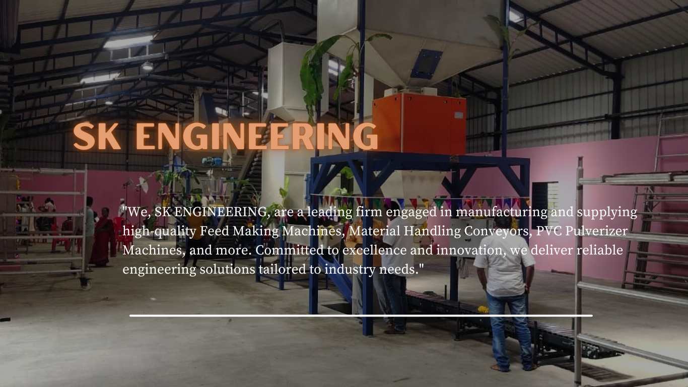 Established in the year 1998 at Ondipudur, Coimbatore, Tamil Nadu, We “SK ENGINEERING” are a based firm, engaged as the foremost of Feed Making Machine, Material Handling Conveyor, PVC Pulverizer Machine, Pellet making machine manufacturer, Cattle feed pellet making machine, Poultry feed pellet making machine, Animal feed pellet machine, etc.